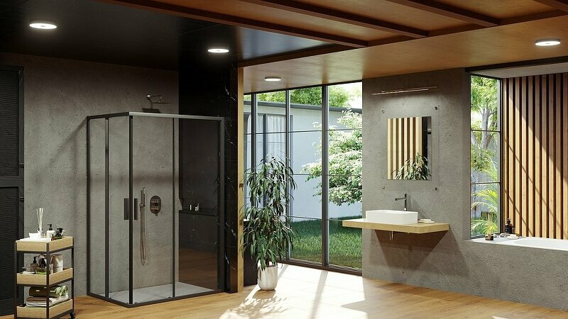 Душевая дверь для уголка Ravak Blix Slim BLSRV2K-100 X1XMA0300Z1 (1000х1000х1950мм) профиль черный/стекло Transparent