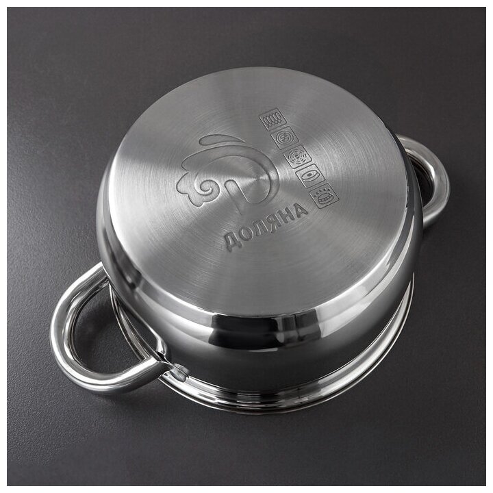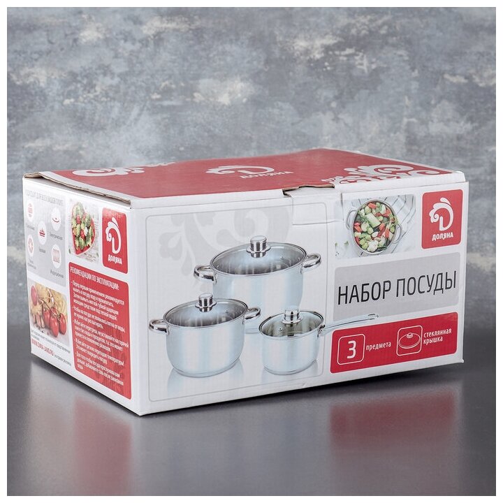 Набор кастрюль из нержавеющей стали Доляна, 3 предмета: 2,3 л, 3,2 л, 4,2 л, крышки