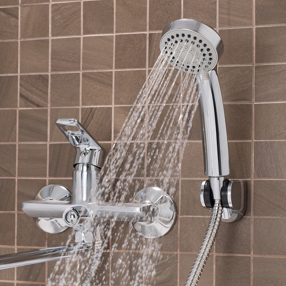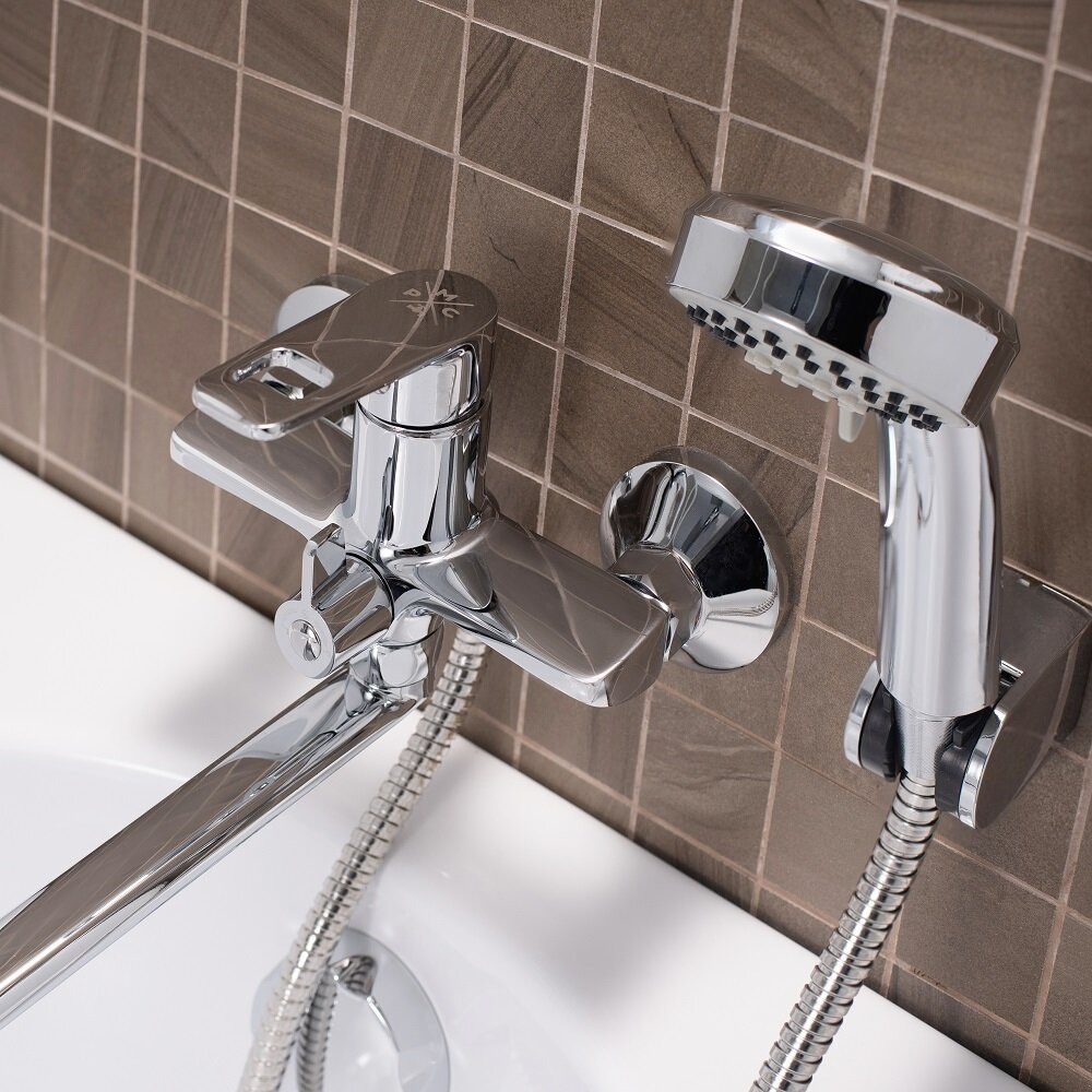 Смеситель с душевой лейкой Ростовская Мануфактура Сантехники SL134-006E, хром хром 1500 мм