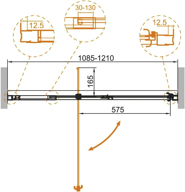душевая дверь в нишу Cezares Душевая дверь в нишу Cezares Variante B 1 110/120 C Cr