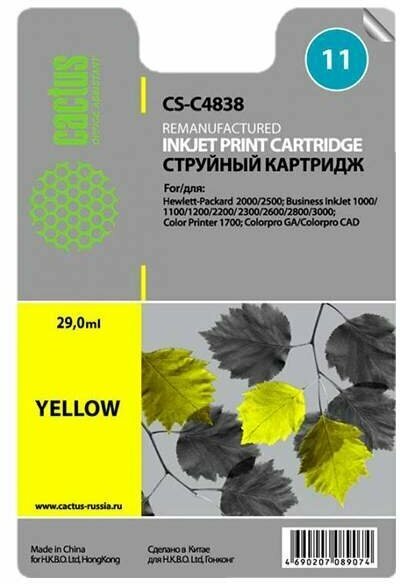 Картридж струйный Cactus CS-C4838 №11 желтый (29мл) для HP BIJ 1000/1100/1200/2200/2300/2600/2800 интересное: