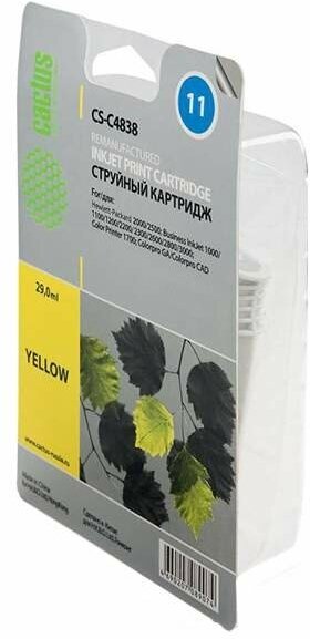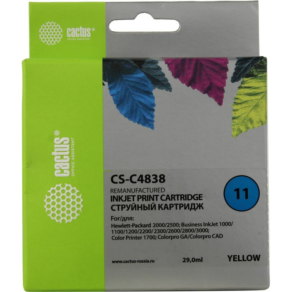 Купить Картридж струйный Cactus CS-C4838 №11 желтый (29мл) для HP BIJ 1000/1100/1200/2200/2300/2600/2800
