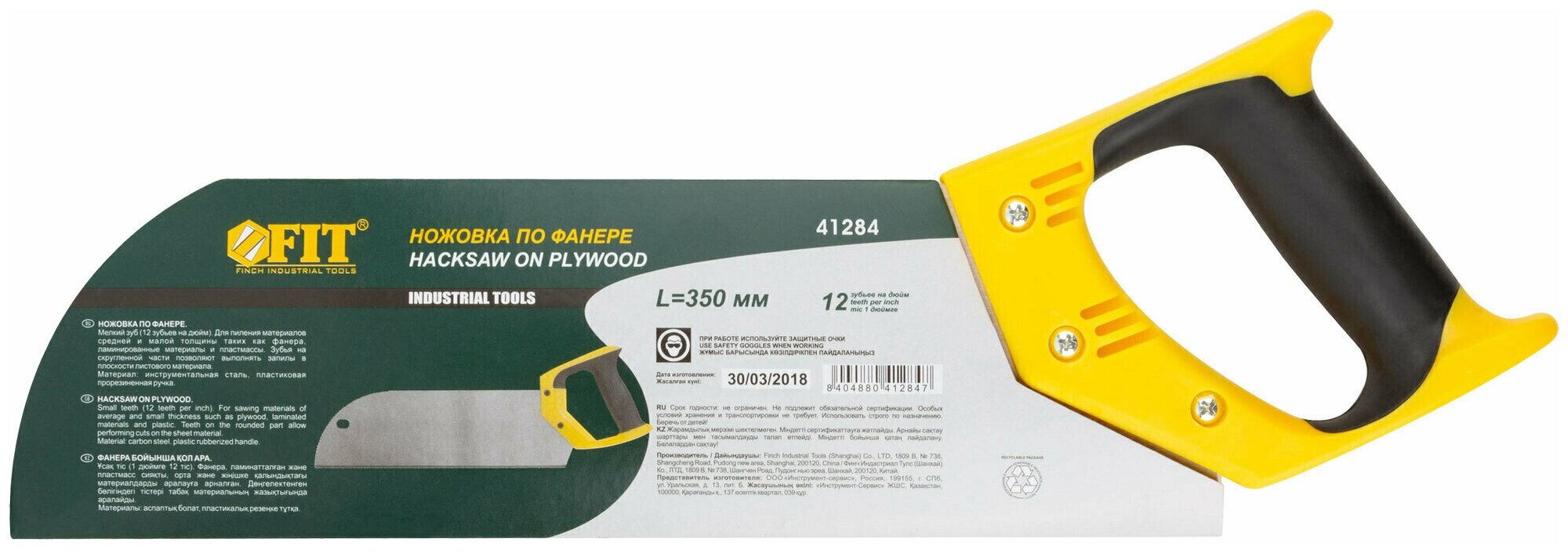 Ножовка по фанере с запилом, черно-желтая ручка, 350 мм, 12 TPI FIT 41284