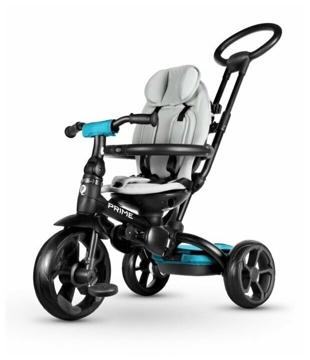 Купить Трехколесный велосипед 6 в 1 Qplay Prime детский с ручкой управления поворотным сиденьем капюшоном и корзиной, голубой