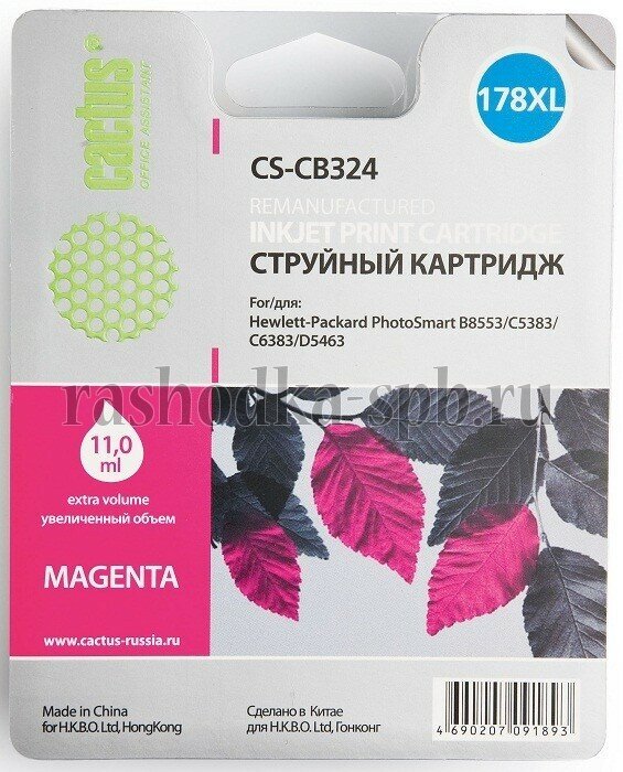 Купить Картридж CACTUS CS-CB324N(CS-CB324), №178XL, пурпурный / CS-CB324N(CS-CB324)