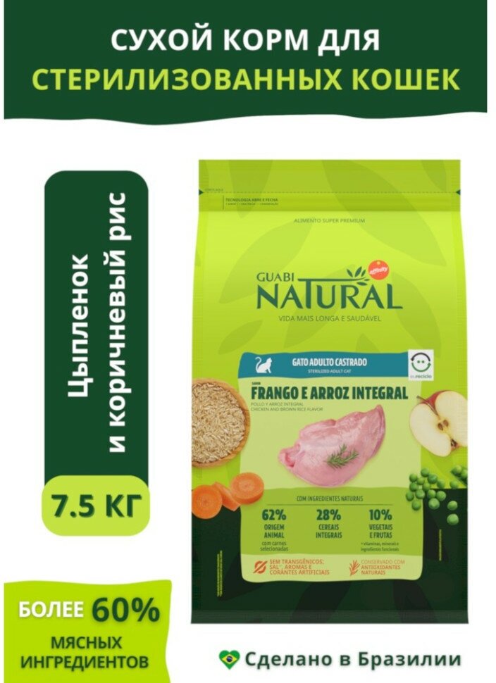 Сухой корм для стерилизованных кошек GUABI NATURAL Natural, , с цыпленком, с коричневым рисом 7.5 кг