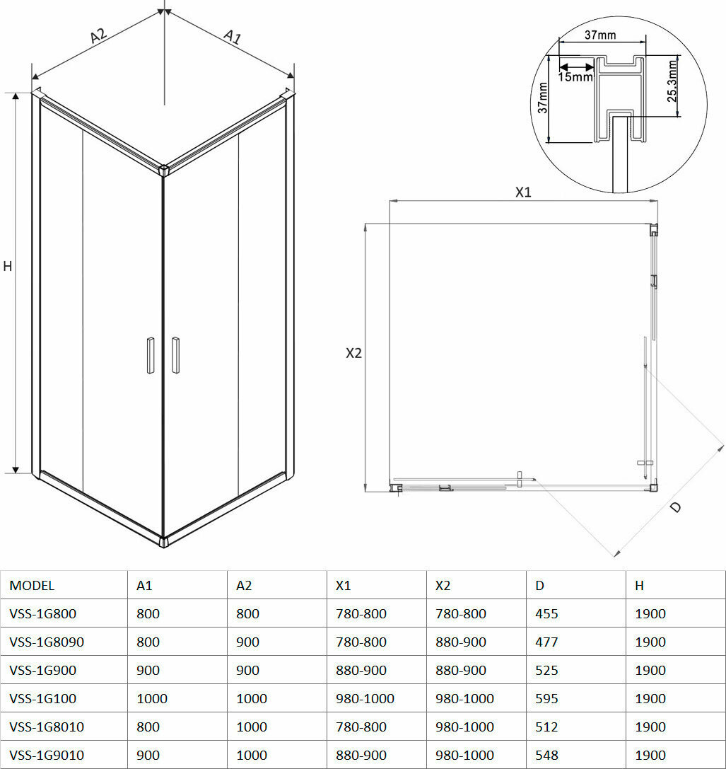 Душевой уголок Black&White Stellar Wind S101 800х800