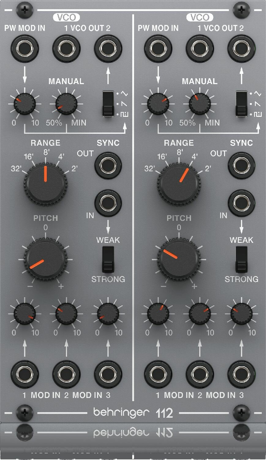 Купить BEHRINGER 112 DUAL VCO двойной модель VCO с 3 формами фолны на каждом осциляторе, вход для внешнего CV, формат Eurorack