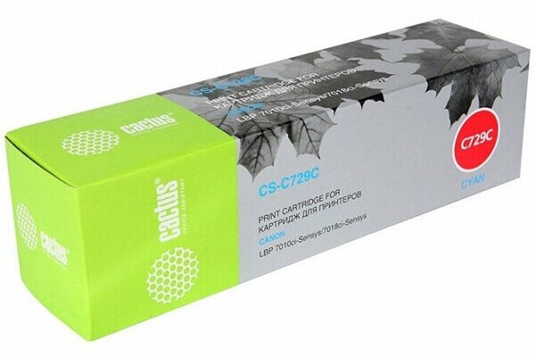 Картридж Cactus CS-C729C для принтеров Canon i-SENSYS LBP7010C/ LBP7018C, голубой, 1000стр.
