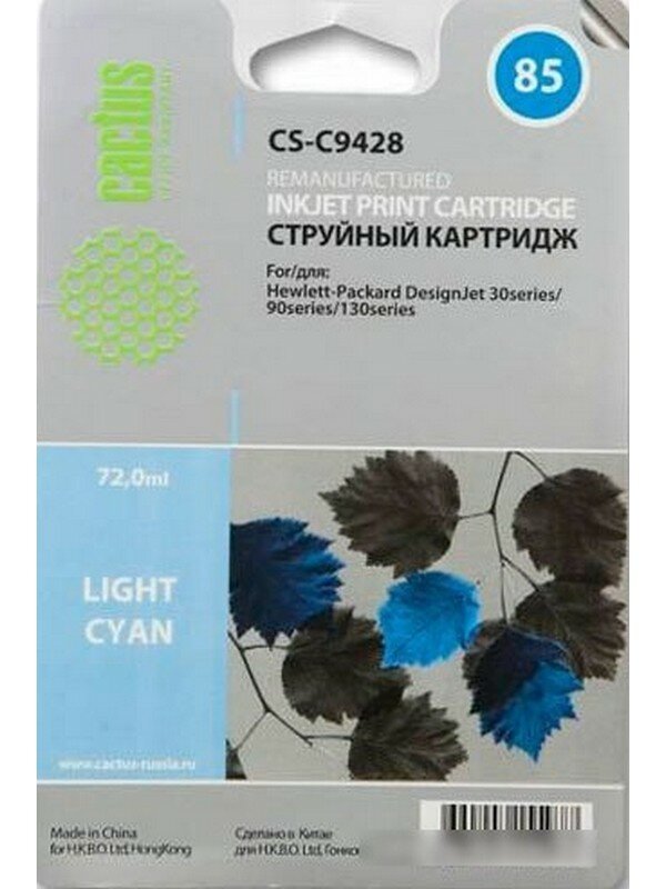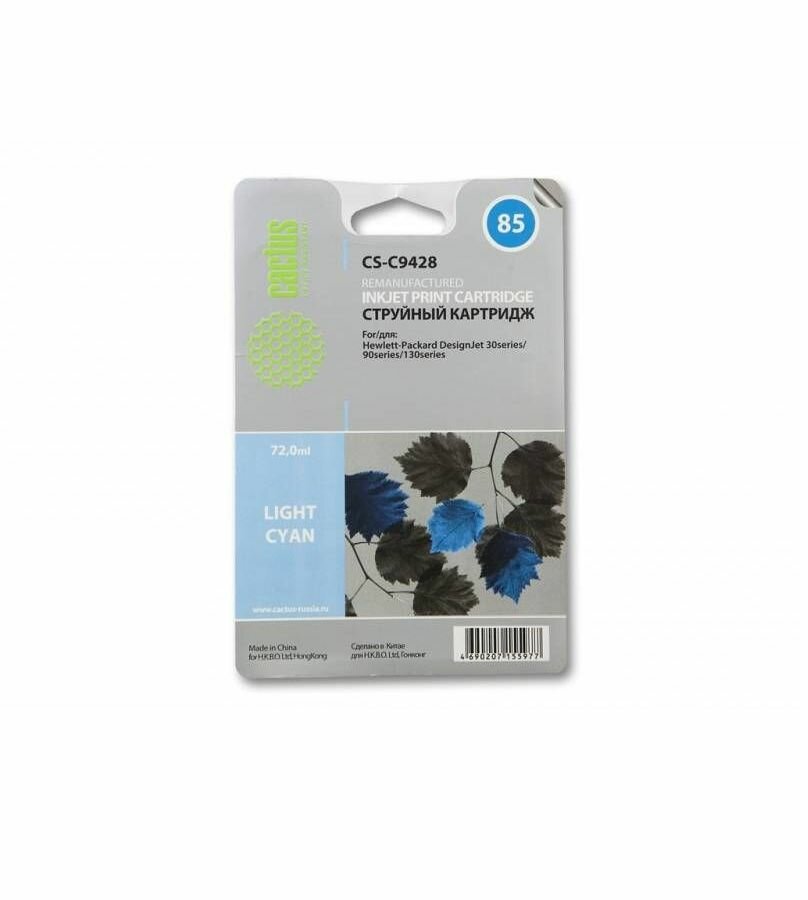 Картридж Cactus CS-C9428 совместимый струйный картридж (HP 85 - C9428A) 72 мл, светло-голубой