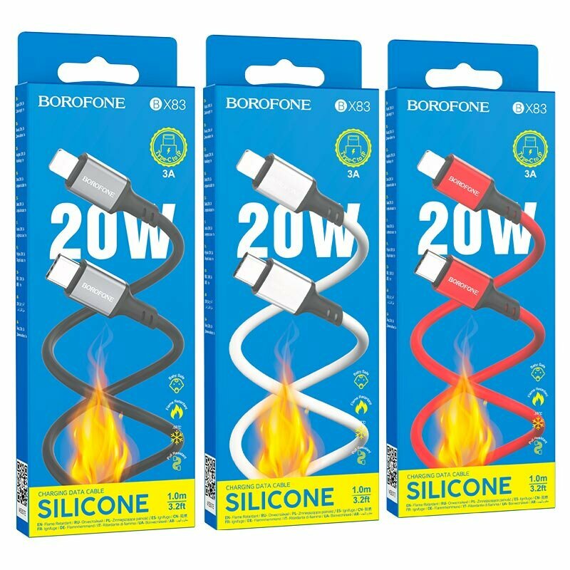 USB-C кабель BOROFONE BX83 Famous PD Lightning 8-pin, 20W, 1м, силикон (белый)