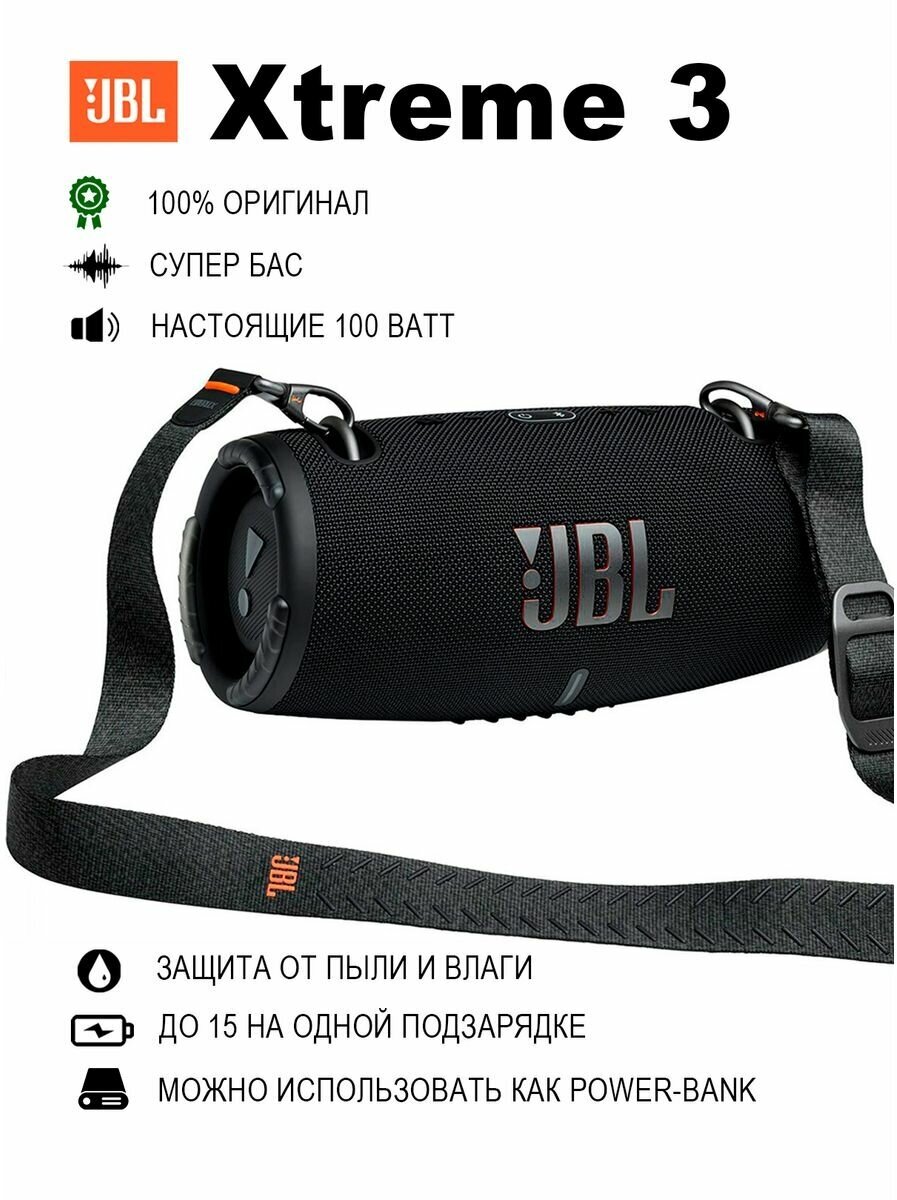 Ниже Вы можете прочитать отзывы на Колонка JBL Xtreme 3, портативная, 100 Вт, оригинал, черная, ознакомится с подробными характеристиками, посмотреть интересные обзоры и фотографии на Колонка JBL Xtreme 3, портативная, 100 Вт, оригинал, черная.