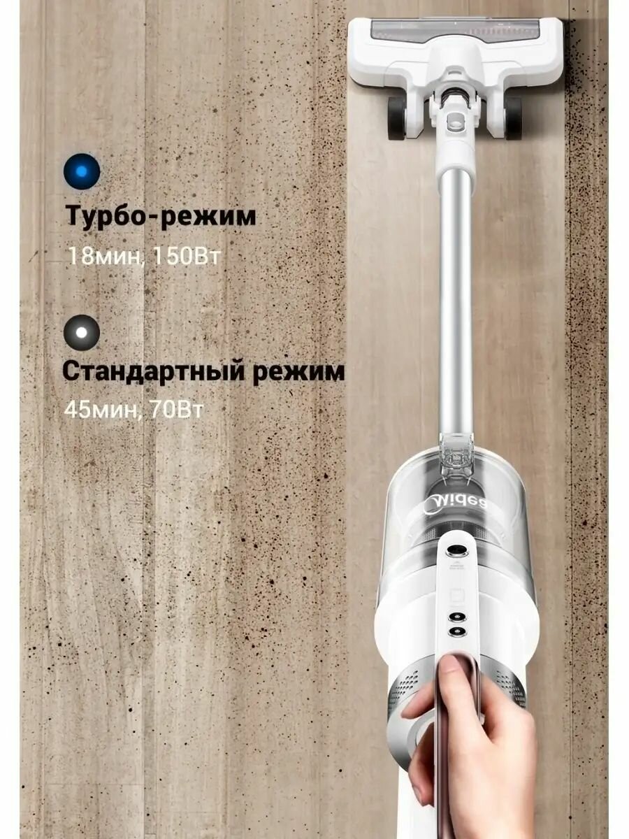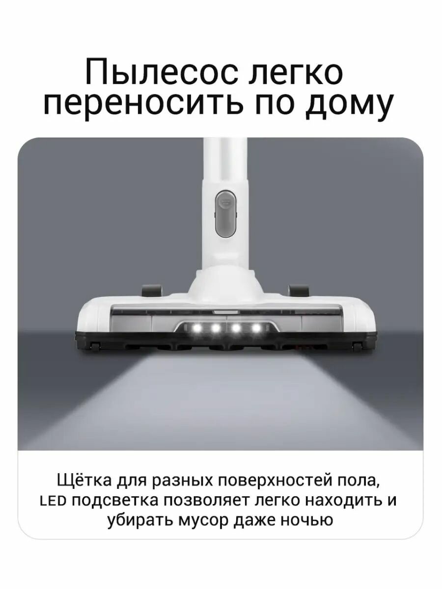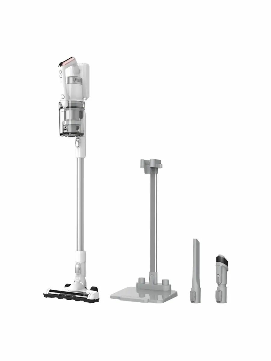 Беспроводной вертикальный пылесос Midea VSS1800, 3 насадки, стойка для хранения, турбо-режим, LED подсветка, фильтрация воздуха, белый