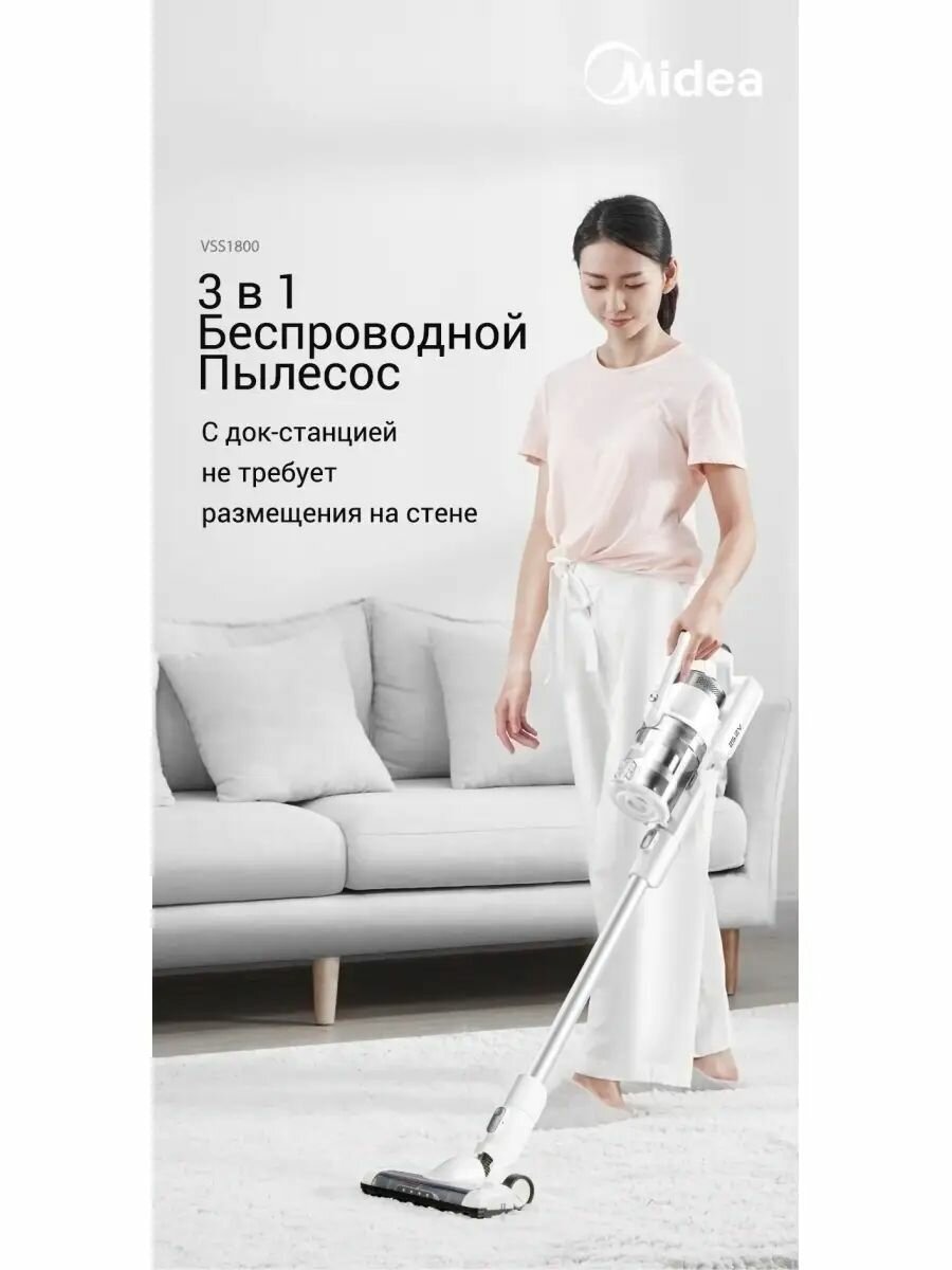 Вертикальный беспроводной пылесос Midea VSS1800 интересное: