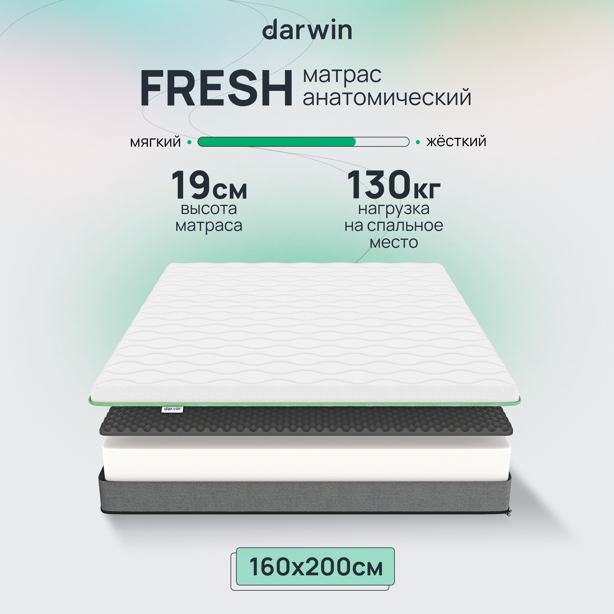 Матрас 160х200 ортопедический Darwin Fresh беспружинный, анатомический, высота 19 см