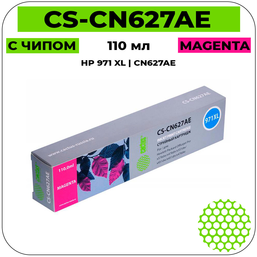 Картридж для струйных принтеров/МФУ CACTUS CS-CN627AE №971XL пурпурный 110 мл для НР DJ Pro X476dw/X576dw/X451dw CS-CN627AE