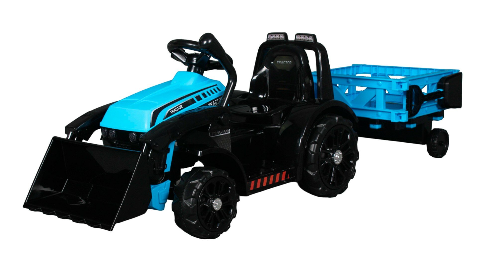 Детский электромобиль трактор с прицепом и ковшом - синий