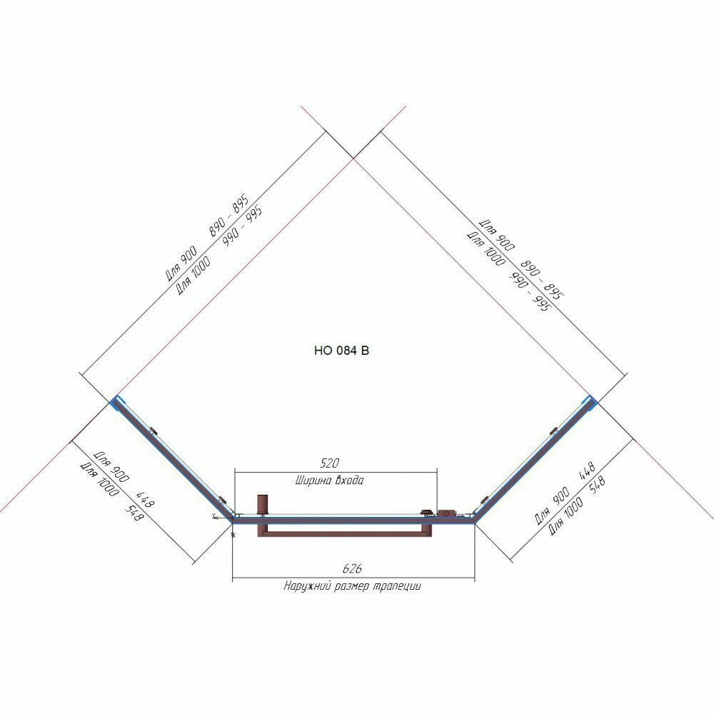 Душевой уголок RGW 100х100х195 см HO-084-W Трапеция, Белый, Прозрачное, 8 мм 2 уп. (350608400-15)