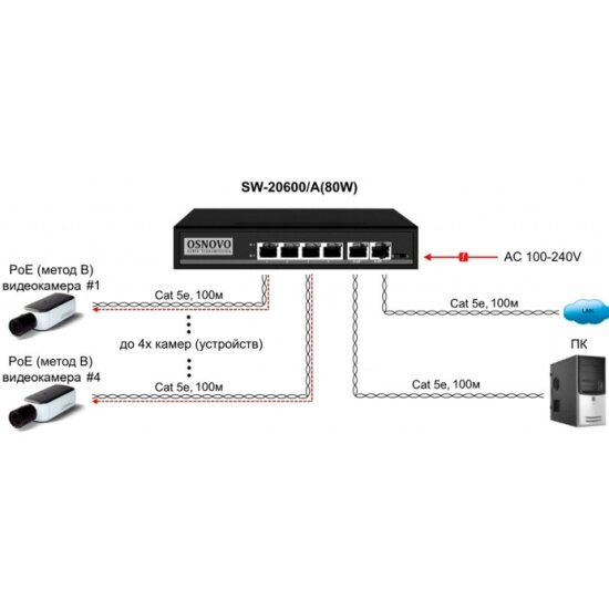 Коммутатор Osnovo Sw-20600/a(80w) 5x100Mb Sw-20600/a(80w) .