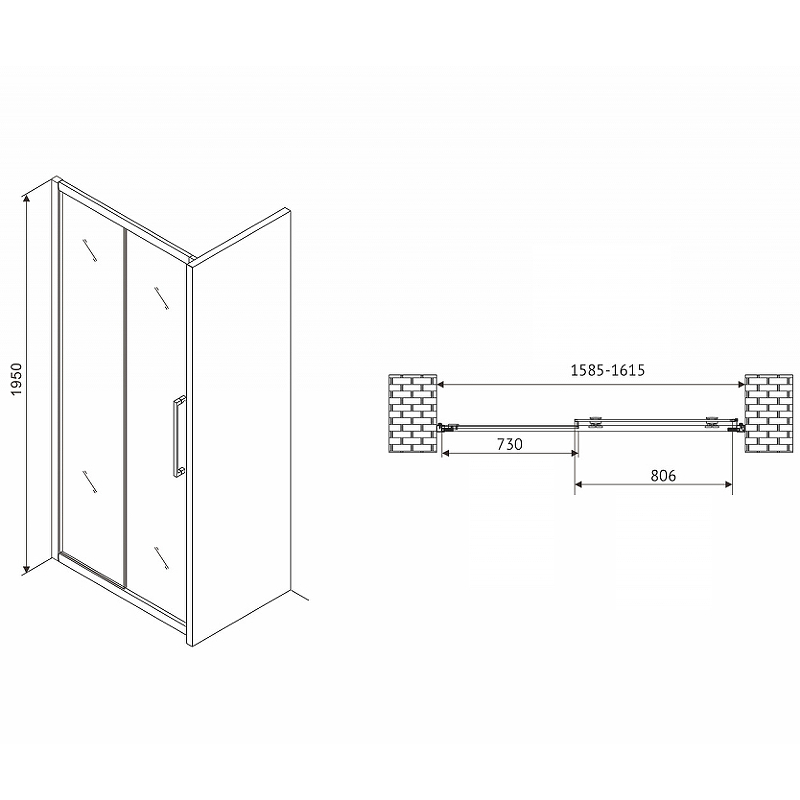 Душевая дверь Abber Schwarzer Diamant 160 см AG30160MH