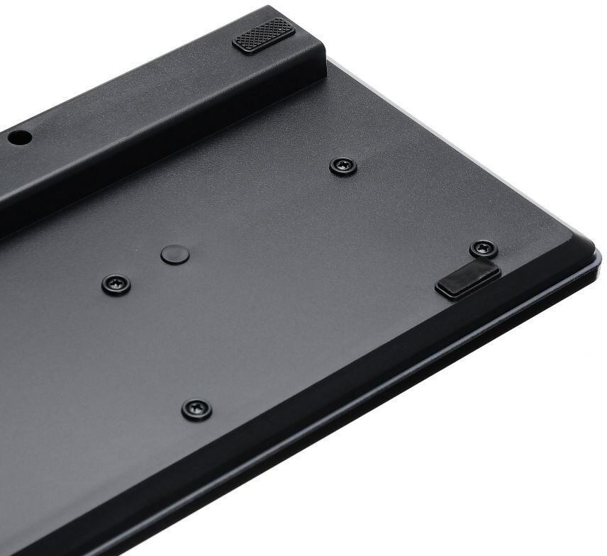 | Минусы: | Разработчики сэкономили на металлической скобке на левом Shift, которая должна частично компенсировать перекос. Делается из скрепки за 5 мин. Также сэкономили на дополнительной мембране на правом Shift, хотя место под нее предусмотрено. Из-за этого клавиша правого Shift перекошена. Подложил кусочек резинки для волос. На длинных клавишах CaosLock, Tab, Enter, правые Alt .. Ctrl, Backspace при быстрой работе и попадании на край происходит перекос и клавиши подзаклинивают. Для прожатия приходится применять чуть бОльшее усилие, чем обычно. Мешает быстрому набору. |