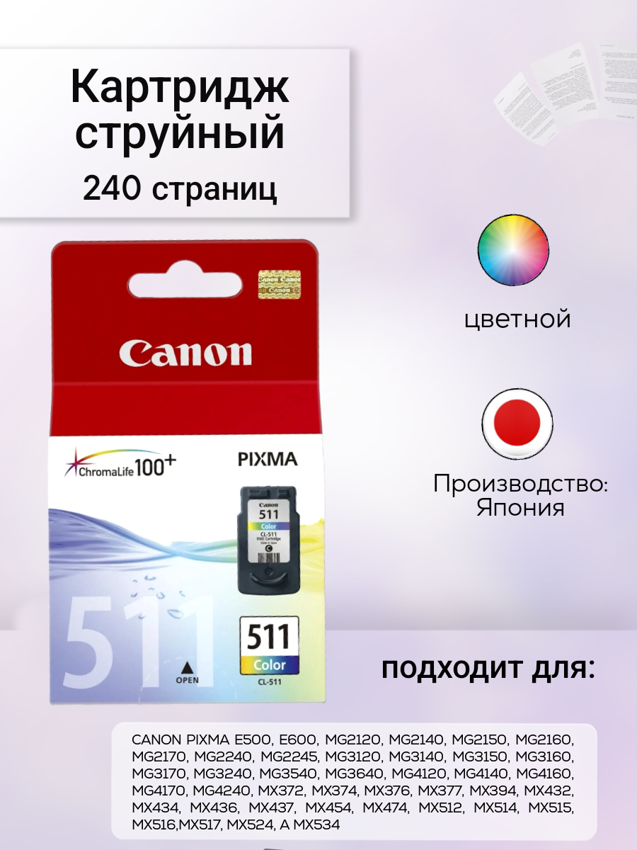 Ниже Вы можете прочитать отзывы на Картридж струйный CANON (CL-511) Pixma MP240/MP260/MP480, цветной, оригинальный, ресурс 244 стр., 2972B007, ознакомится с подробными характеристиками, посмотреть интересные обзоры и фотографии на Картридж струйный CANON (CL-511) Pixma MP240/MP260/MP480, цветной, оригинальный, ресурс 244 стр., 2972B007.