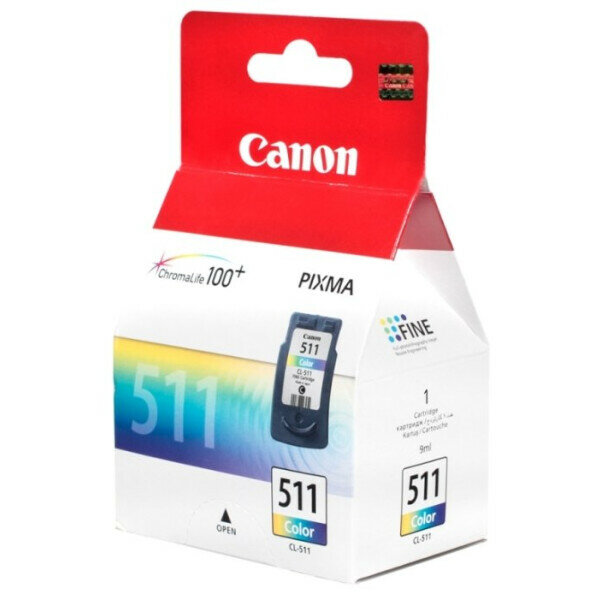 Картридж струйный Canon CL-511 (2972B007), голубой/пурпурный/желтый, оригинальный, объем 9мл, ресурс 244 страниц