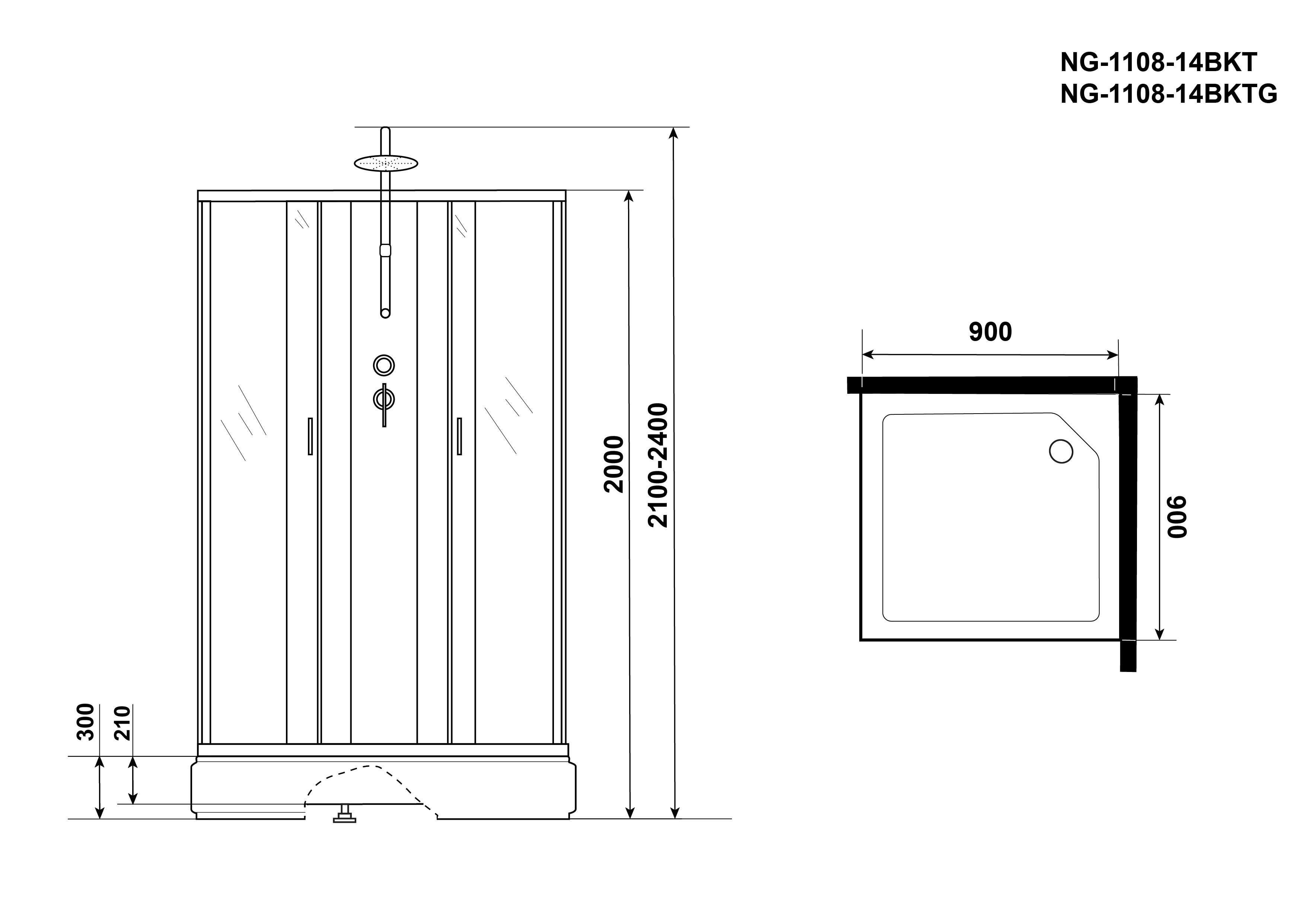 Душевая кабина 90x90x240 см Niagara NG-1108-14BKT матовое