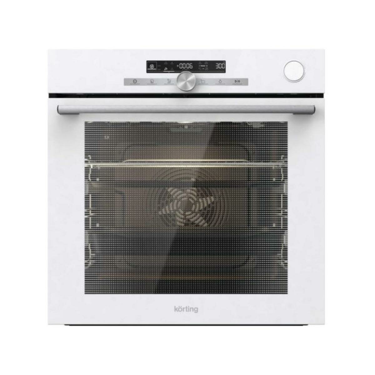 Встраиваемая газовая духовка Korting Встраиваемый 60 см, Motion, 77 л, 12 режимов, очистка паром, белый цвет