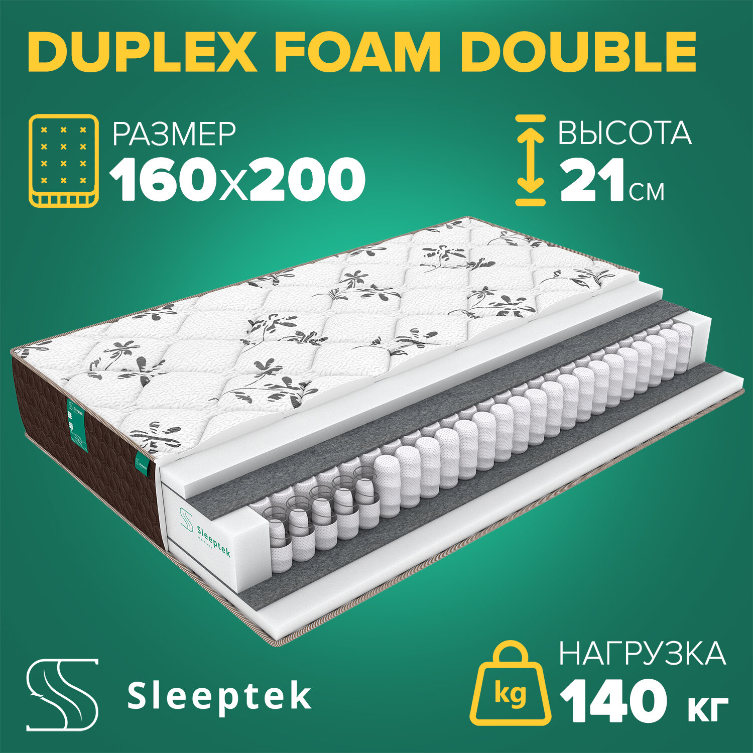 Пружинный матрас Duplex Foam Double, 140х200 (Sleeptek)