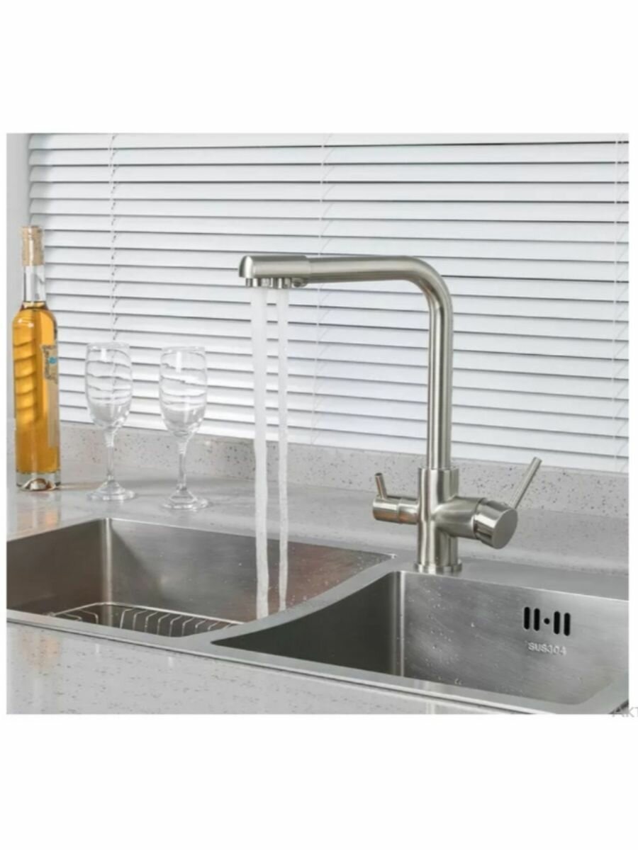 Купить Смеситель для кухни Frud R43053-5, с подключением к фильтру, с высоким поворотным изливом, сатин