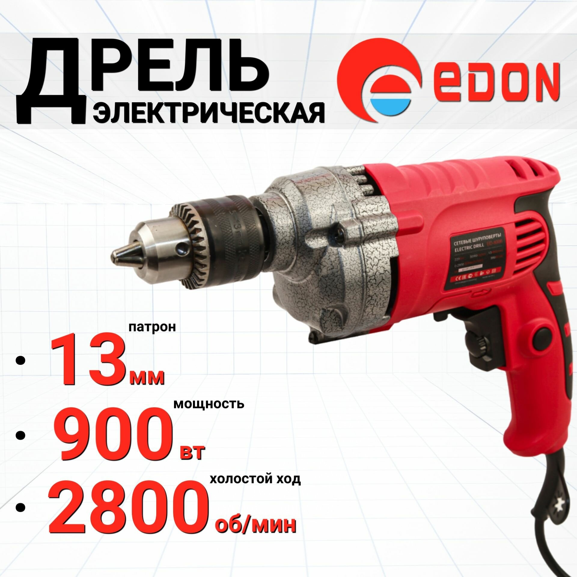 Безударная дрель Edon ED-8006, 900 Вт красный/черный