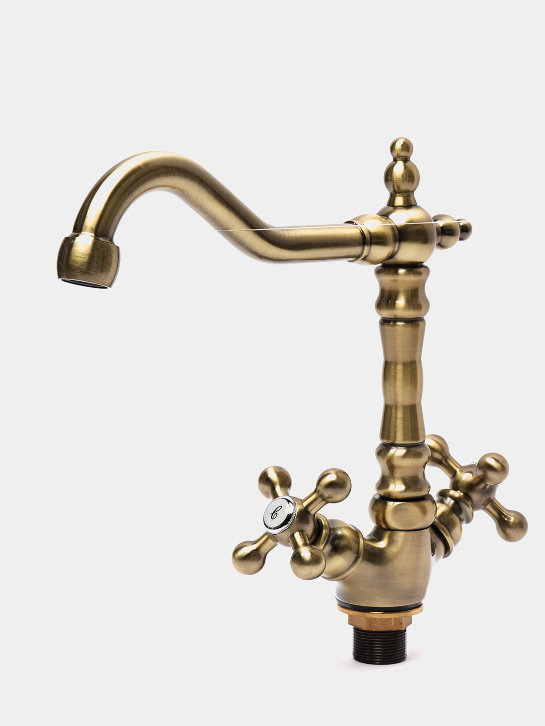 Смеситель кухня на гайке высокий поворотный, крест, антик бронза латунь Accoona A4571C