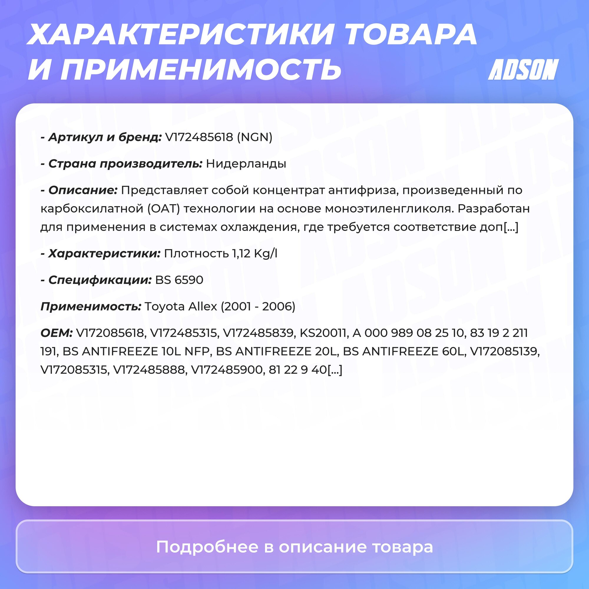 СохранитьАнтифриз концентрат BS синий 1л NGN V172485618 интересное: