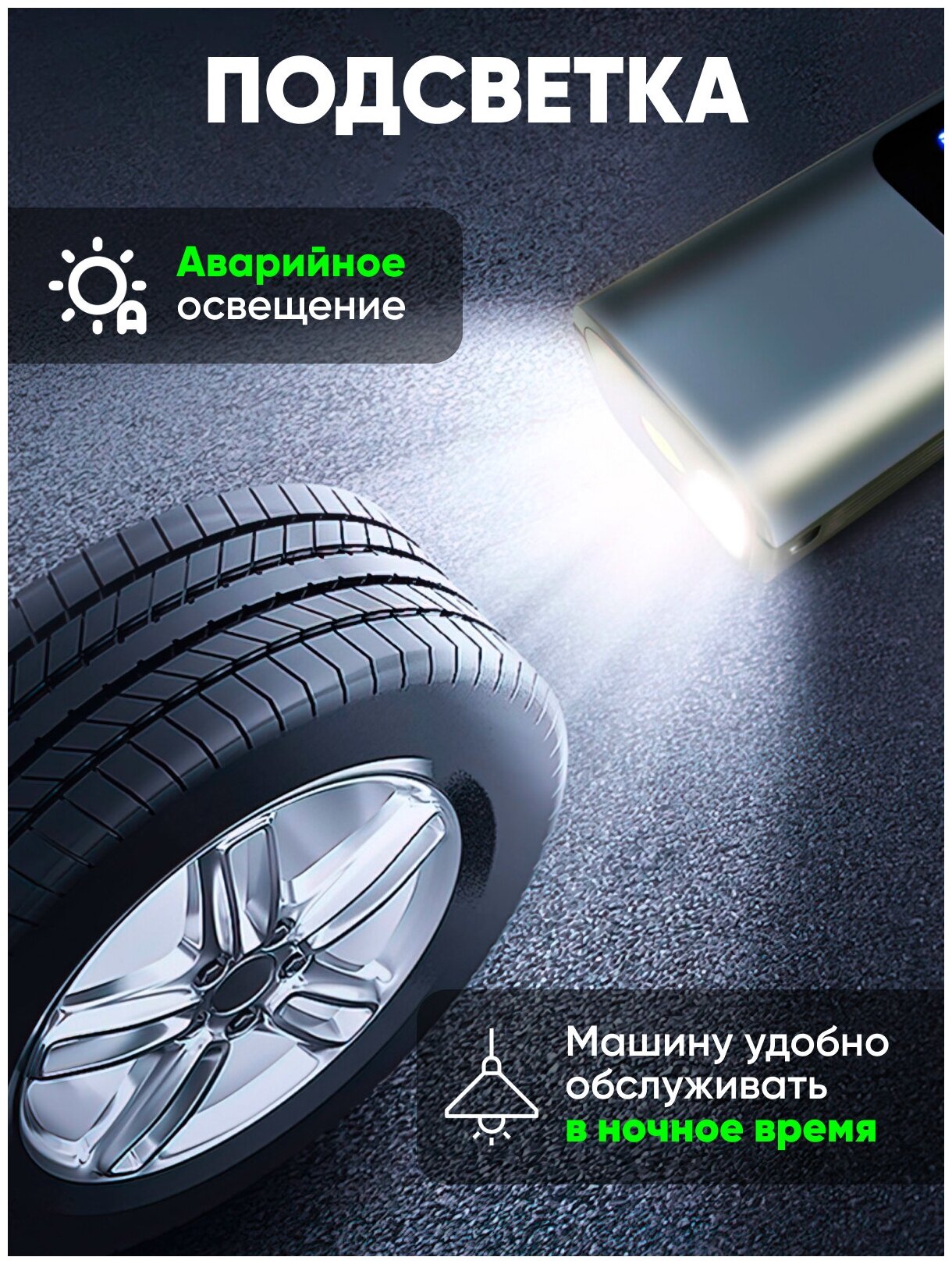 Пылесос-компрессор для автомобиля с фонариком 3в1/ насос для машины с подсветкой/ прибор для чистки салона