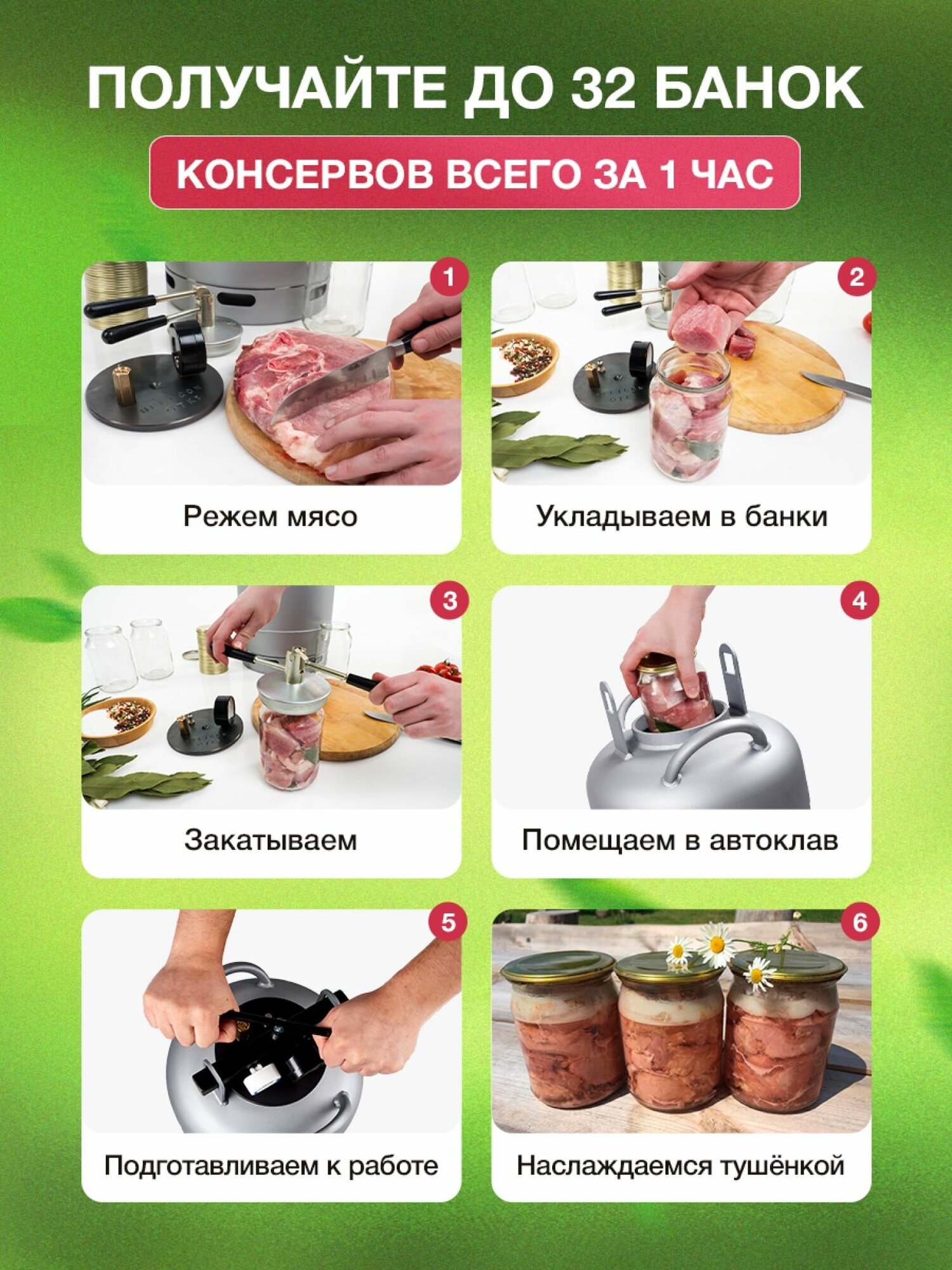 | Отзыв: | Хорошая кастрюля. Краска не обгорает по сравнению с настоящим белорусским автоклавом. Ржавчины конечно много при варке тушёнки. Снять с плиты с банками и водой вообще не возможно, очень тяжелый. С таким автоклавом обязательно должен быть мужчина рядом)). А в целом позитив- получается вкуснейшая тушенка. Если готовите не часто, берите этот автоклав, не вижу смысла переплачивать. Спасибо производителю, все работает |