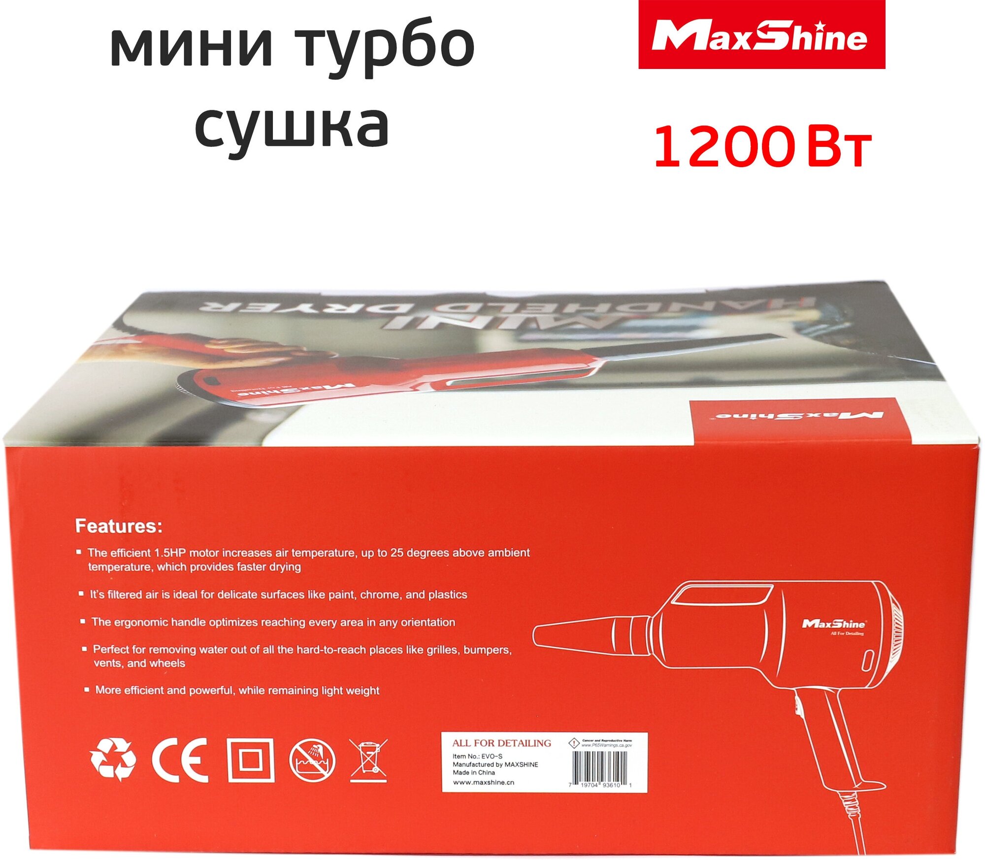 Мини Турбо сушка MaxShine EVO-S (1.2кВт) Mini Handheld Dryer интересное: