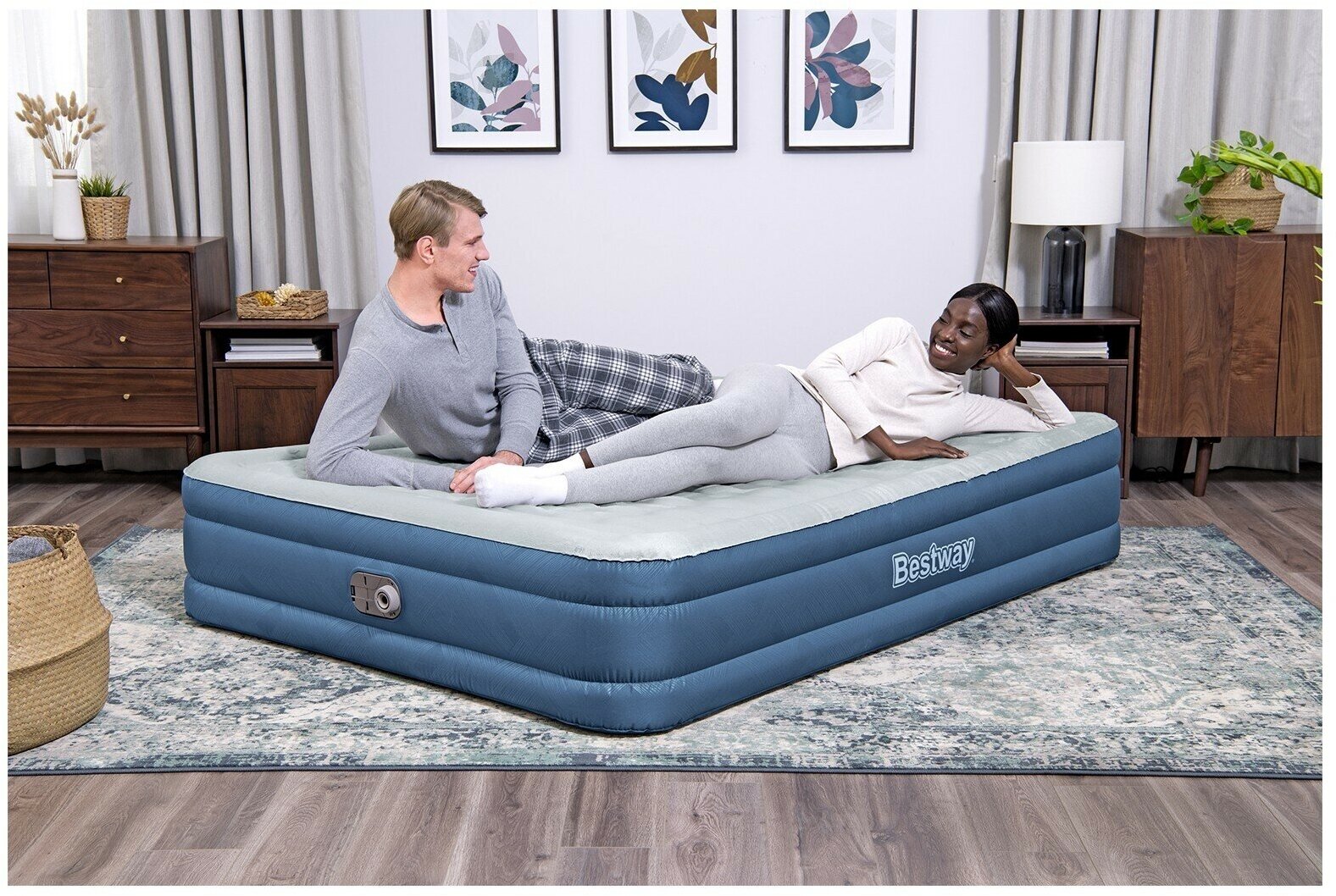 Надувная кровать Bestway Fortech Queen Snugable Top 69135, 203х152 см, серый/синий