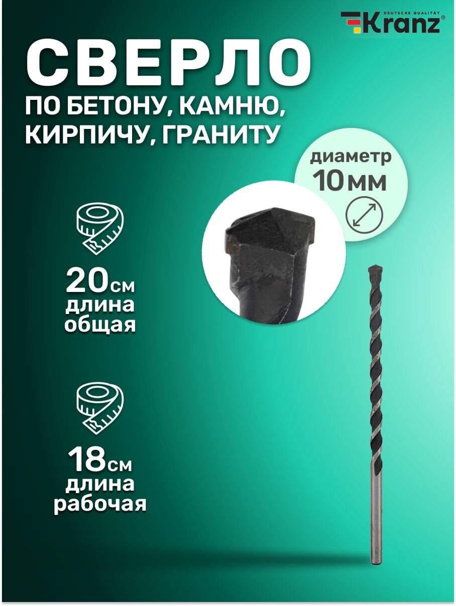 Сверло по бетону KRANZ 10х200 мм с цилиндрическим хвостовиком интересное: