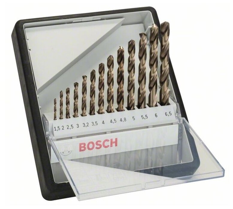 Набор сверл по металлу BOSCH 2.607.019.926 HSS-Co 13 шт Robust Line D1.5-6.5 из легированной быстрорежущей стали по DIN 338, содержание кобальта 5 %