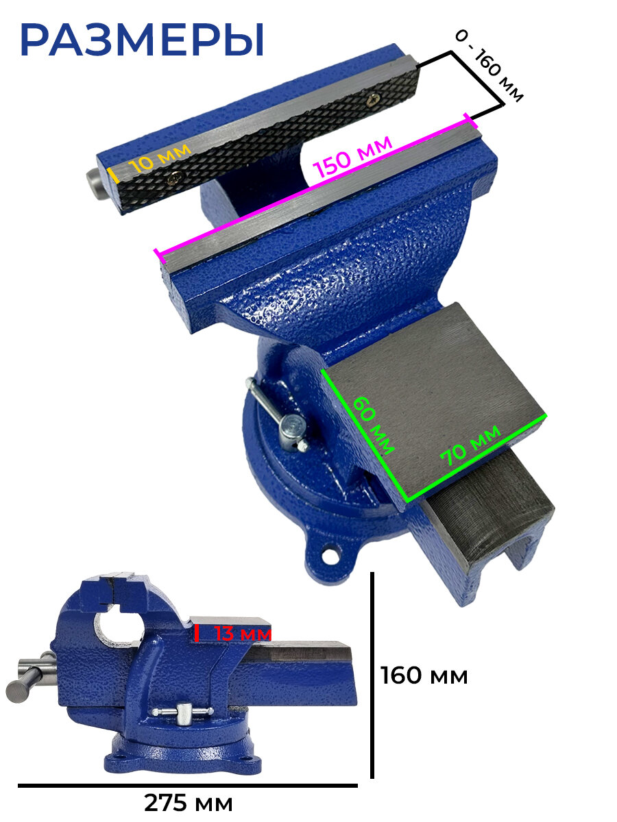 Тиски слесарные 150 мм, настольные с наковальней и поворотным механизмом, чугунные интересное: