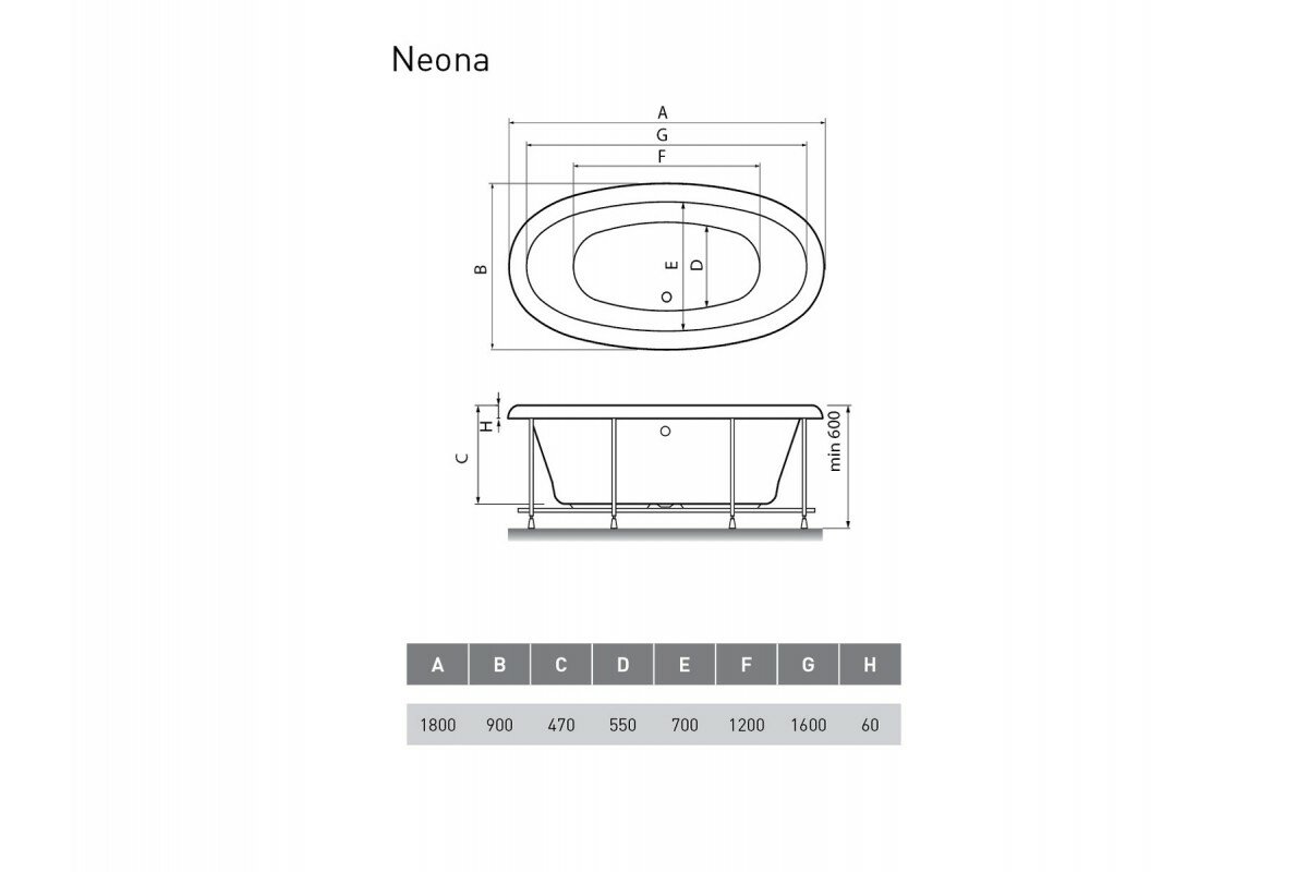 Ванна Relisan NEONA 180x90см отдельностоящая (Гл000000548)