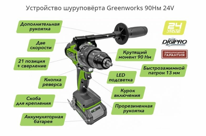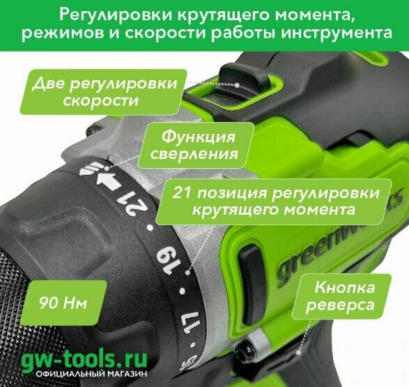 Купить Шуруповерт аккумуляторный GREENWORKS GD24DD90 24V без АКБ и ЗУ