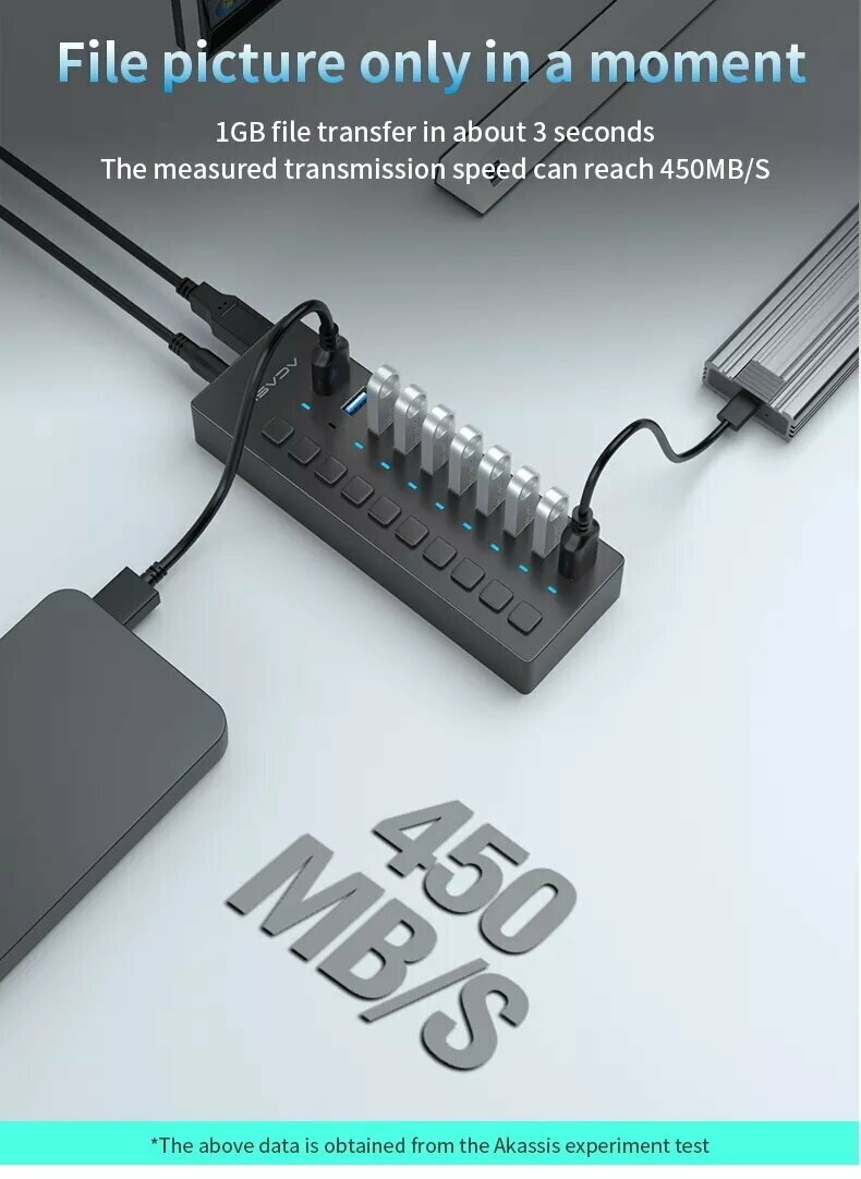 Хаб Acasis USB 3.0 12V 4A HS-710MS (10 портов) Green интересное: