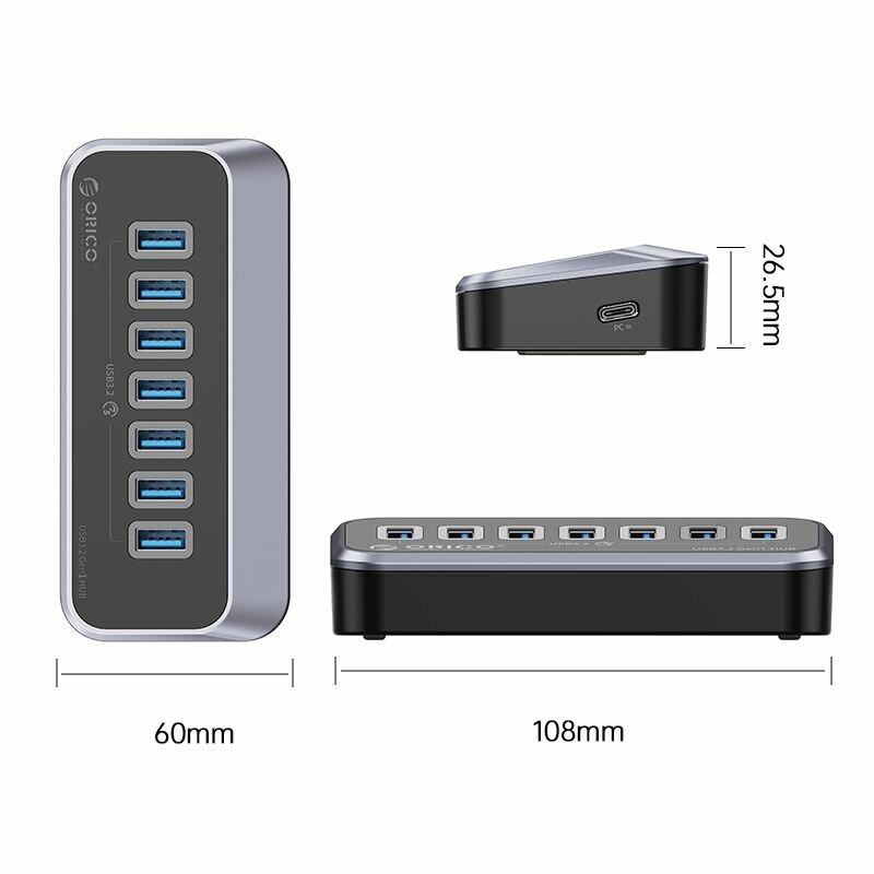 USB-концентратор, на 7хUSB-A 3.2 Gen1 портов, Orico M3U3-7A-10, черный [ORICO-M3U3-7A-10-BK-BP]