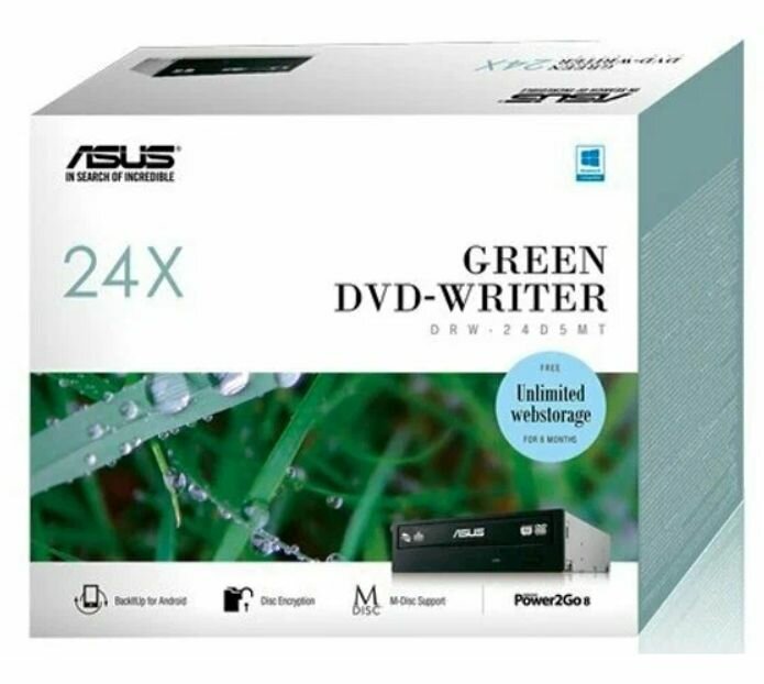 Оптический привод ASUS DRW-24D5MT (DVD±RW) Black RTL (DRW-24D5MT/BLK/G/AS)