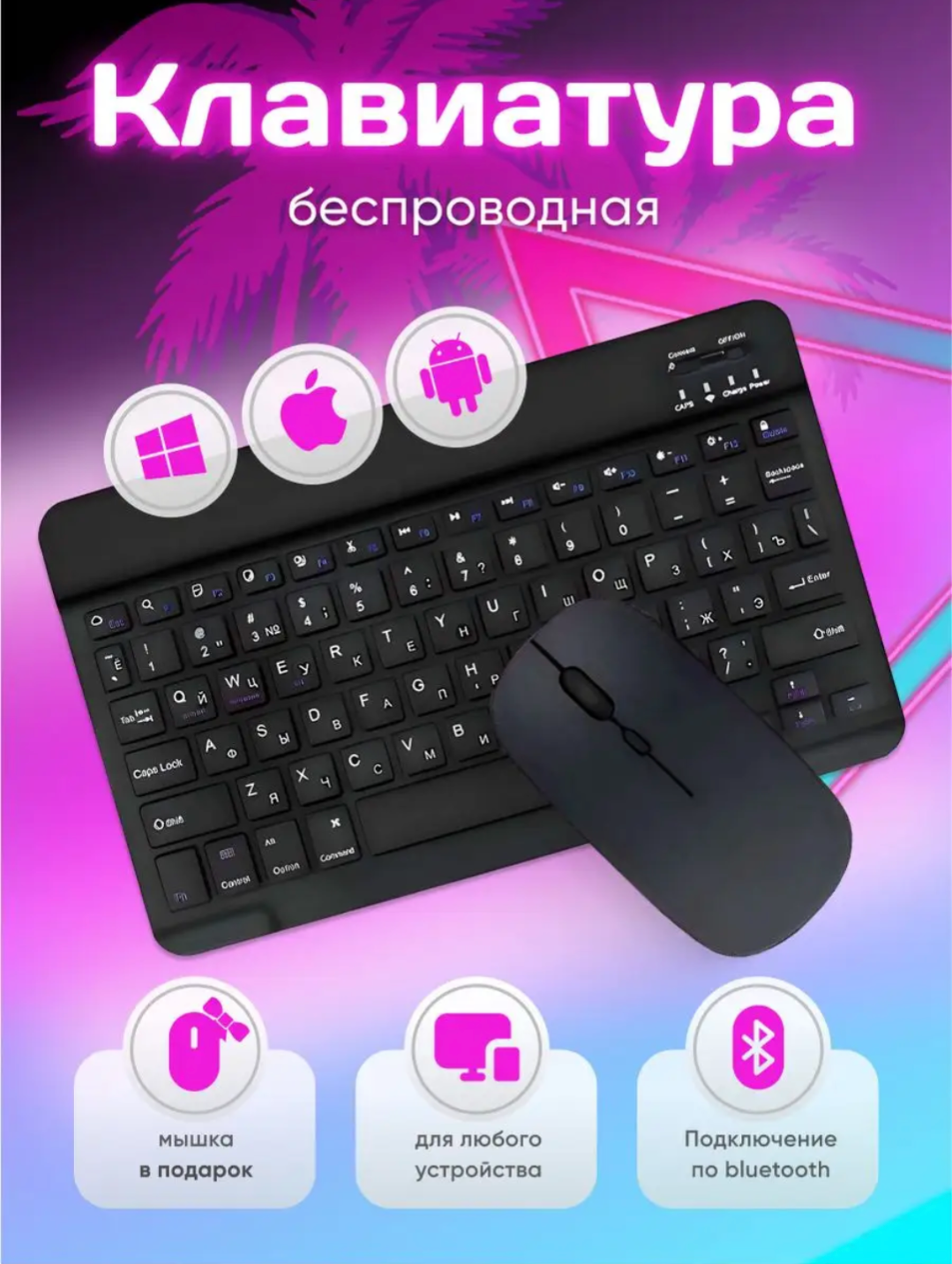 | Плюсы: | Компактная клавиатура и мышь. По Bluetooth подключилось к планшету и смартфону без проблем. |
