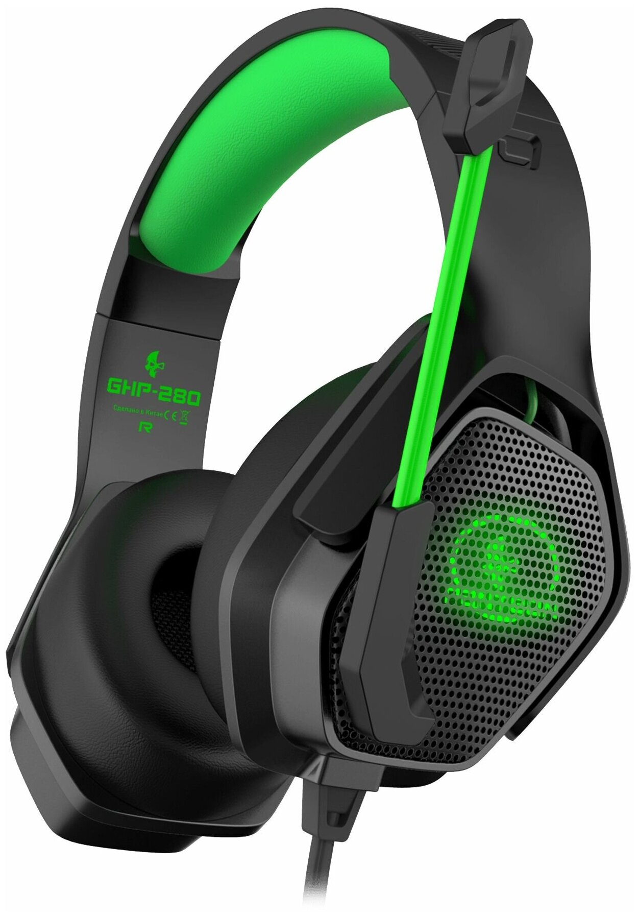 Игровая гарнитура Jet.A PANTEON GHP-280 черно-зеленая(2х3,5мм mini jack, многоцветная LED, звук 2.0)