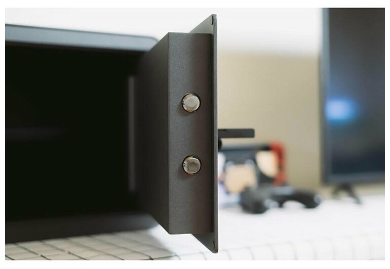 | Плюсы: | Стильный дизайн. На лицевой панели не видно ни цифр (включаются от легкого прикосновения)ни замочной скважины (нужно надавить на крышечку). Смотрится великолепно. Сейф при правильном наборе кода открывает сам дверь, затем напоминает, что не закрыт. Есть полка, которая отделана материалом, чтобы не гремело о металл. Открывается ключом или кодом сразу, на отпечаток в 80% не реагирует, может, что-то сделал не так. |