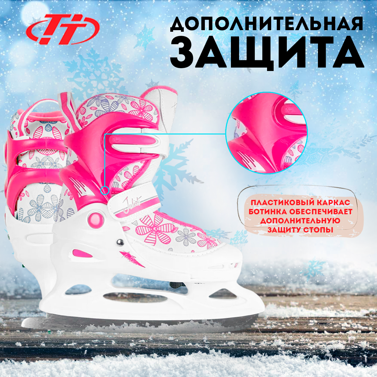 Коньки детские раздвижные TECH TEAM Juliet (30-33 / белый) интересное: